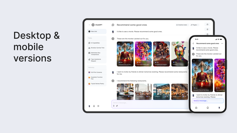 Snow ChatGPT UI Kit is a design system and UI Kit for AI Chat products like ChatGPT, we designed it with reference to the functions of ChatGPT.