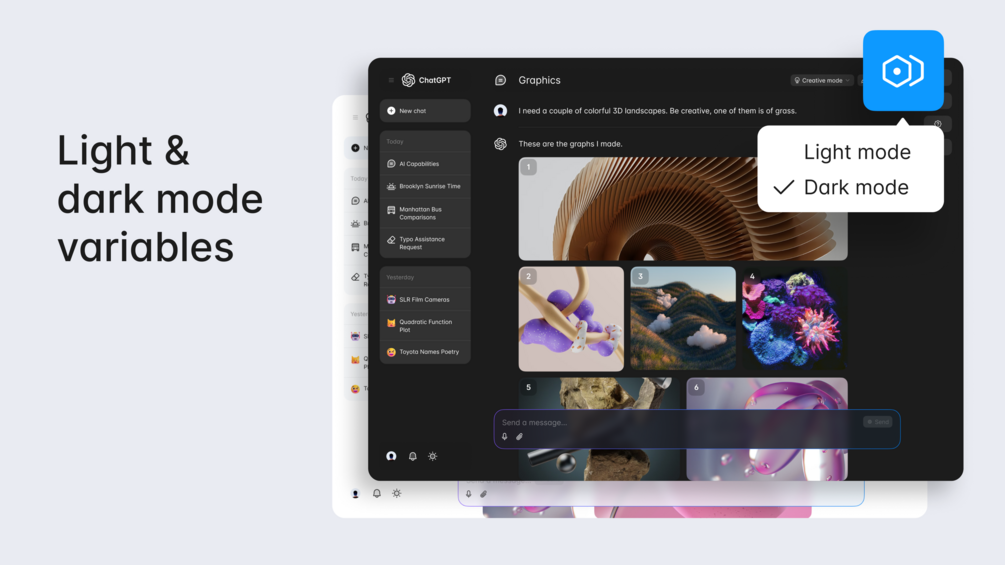 Use variables to toggle between light and dark modes.